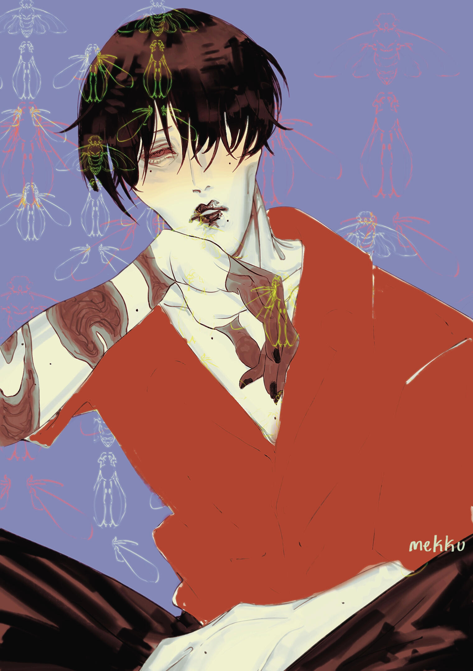 I draw doomed yaoi, guts and bugs.